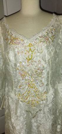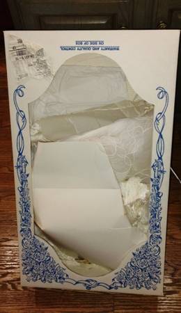 This dress was once preserved in a wedding storage box. The box is opened but the dress is in great condition.