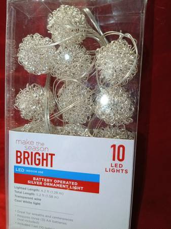 Make The Season Bright 10 LED Light Battery Operated Sliver Ornament Light